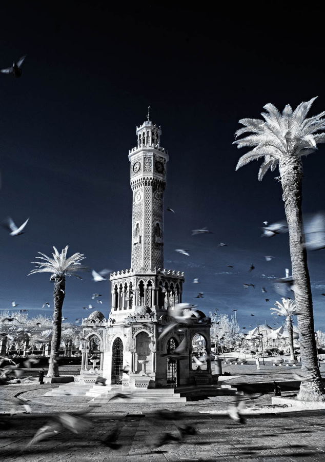 - Gökyüzü ve bulutlar arasındaki kontrast ciddi anlamda artar. Gökyüzü kızılötesi ışığı emdiği için siyaha yakın bir renk alırken bulutlar kızılötesi ışığı geçirdiği için kar beyazı bir görünüm alır.